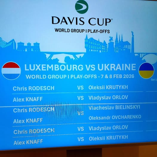 Відбулося жеребкування матчевої зустрічі плейоф Першої Світової групи Кубку Девіса між командами Люксембургу та України, яка відбудеться у Люксембурзі 7-8 лютого.