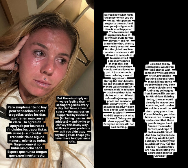 Турнір організував для гравців екскурсію центром Кіто – і я вдячна за це, місто дійсно гарне. Але глобальна проблема залишається: росіянам все ще дозволяють брати участь у турнірах. Особисто я не можу це змінити, але я твердо вірю, що їм не повинно бути дозволено брати участь у спортивних змаганнях під час війни.