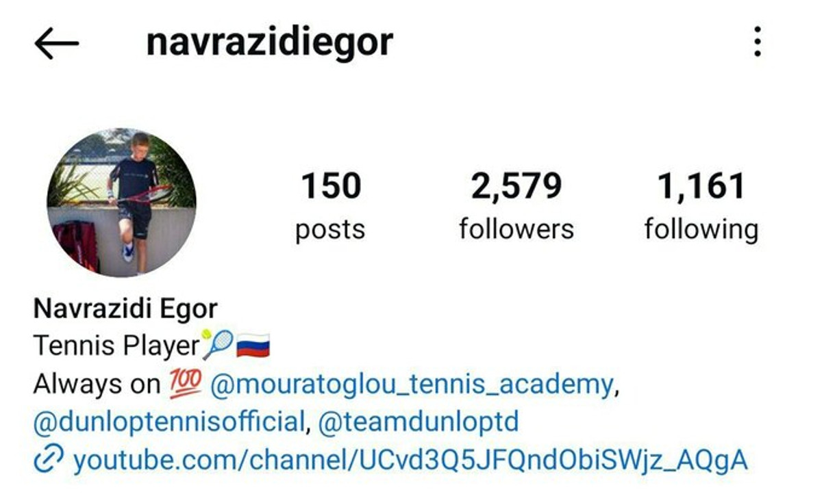 Єгор Навразіді є нейтральним спортсменом, однак в Instagram профілі вказаний саме прапор Росії. У нинішньому сезоні 15-річний росіянин провів 21 матч на юніорському рівні, з яких виграв 13 та поступився у восьми.