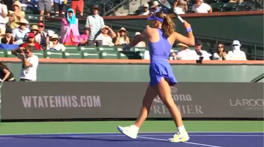 Сьома ракетка світу не втрималася на ногах і навіть присіла на корт після удару, однак змогла швидко оговтатися.