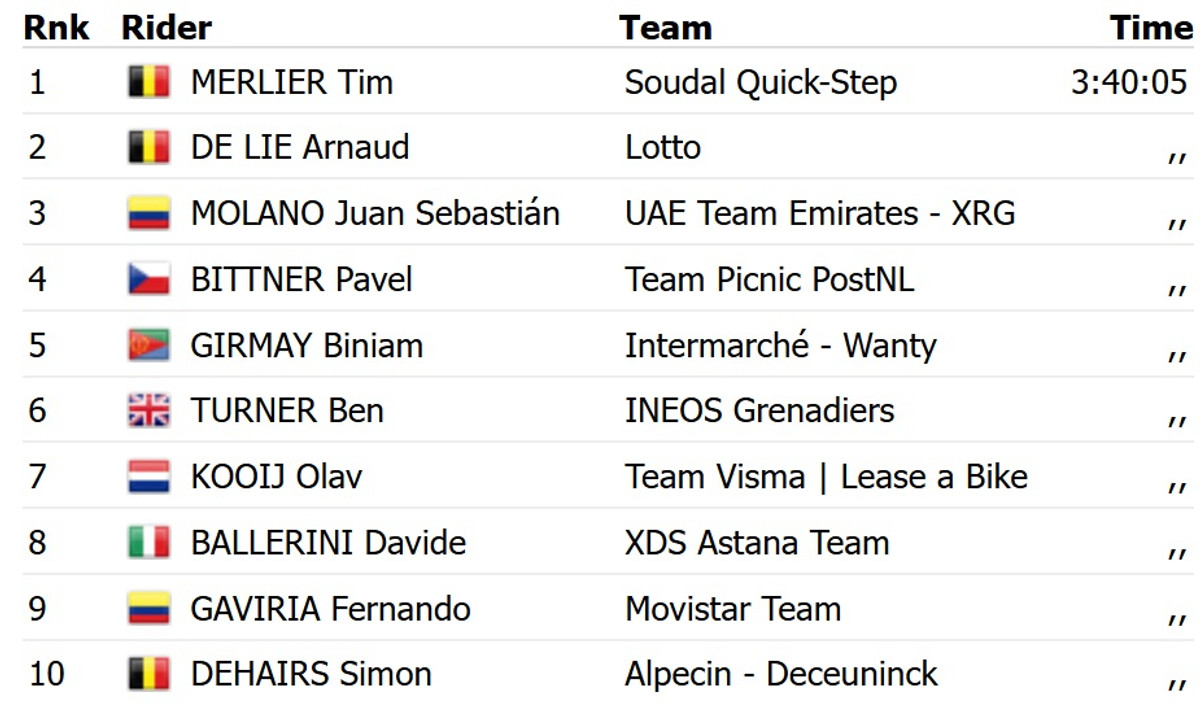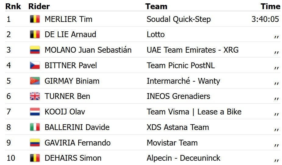 У фінішному спринті чинний чемпіон Європи в груповій гонці випередив свого співвітчизника Арно Де Лі з команди Lotto та колумбійця Хуана Себастьяна Молано з UAE Emirates. Для Мерліра це сумарно 13-та перемога у поточному сезоні. В липні він виграв два етапи на Тур де Франс-2025.