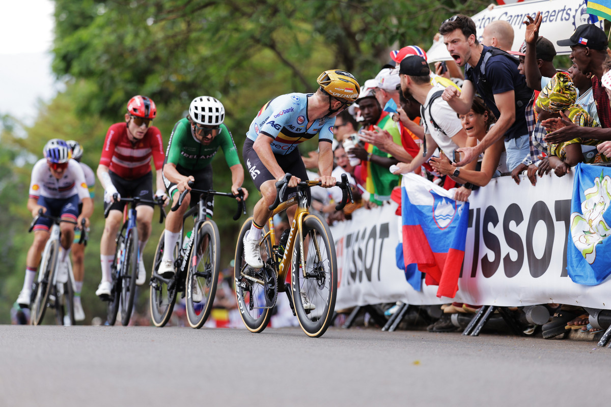 А за спиною Погачара розгорталася цікава боротьба за срібну та бронзову нагороди. Ремко Евенепул після блискучої перемоги в розділці збирався кинути виклик словенцеві в груповій гонці. Проте спершу він не зумів відповісти на атаку Тадея на Мон Кігалі, а потім двічі зупинявся для заміни велосипеда. При чому, друга заміна була проведена вкрай невдало: Ремко довелося довго чекати на технічку збірної Бельгії, на цьому він втратив щонайменше 30 секунд зайвого часу.