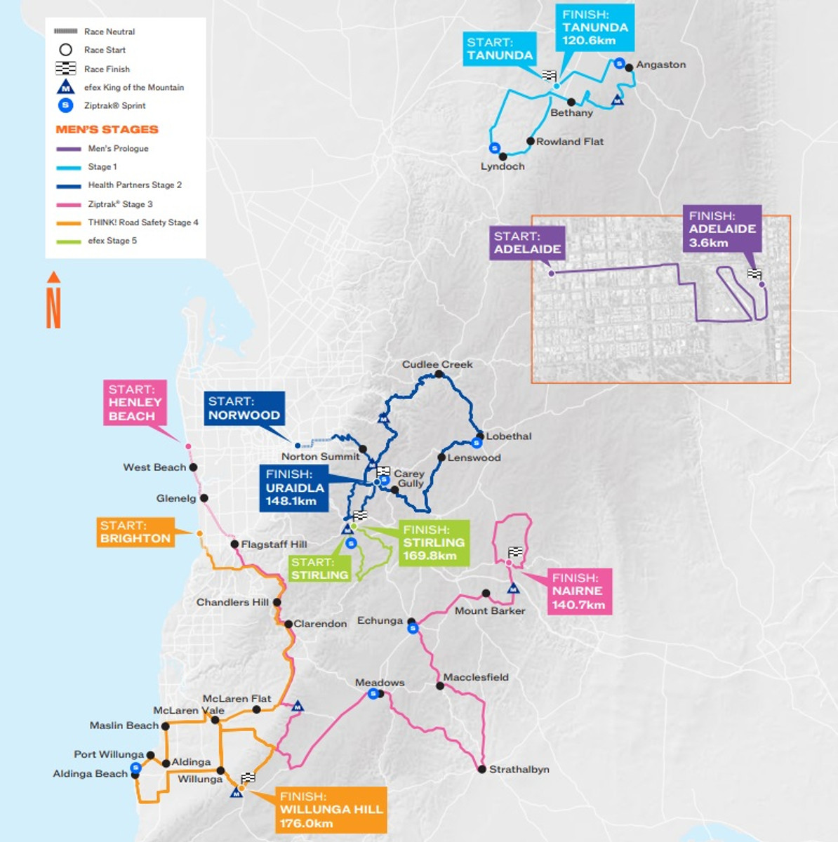 Головна новизна – те, що лише вдруге в історії у програмі Туру Даун Андер буде гонка з роздільним стартом. Ідеться про 4-кілометровий пролог у Аделаїді на першому етапі. До цього розділка була в програмі Туру Даун Андер лише в 2023 році. Тоді це також був пролог у Аделаїді, проте три роки тому його дистанція становила 6 км.