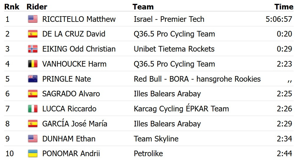 Пономар фінішував десятим із відставанням у 2 хвилини і 44 секунди від переможця, американця Меттью Ріккітелло з Israel Premier Tech.