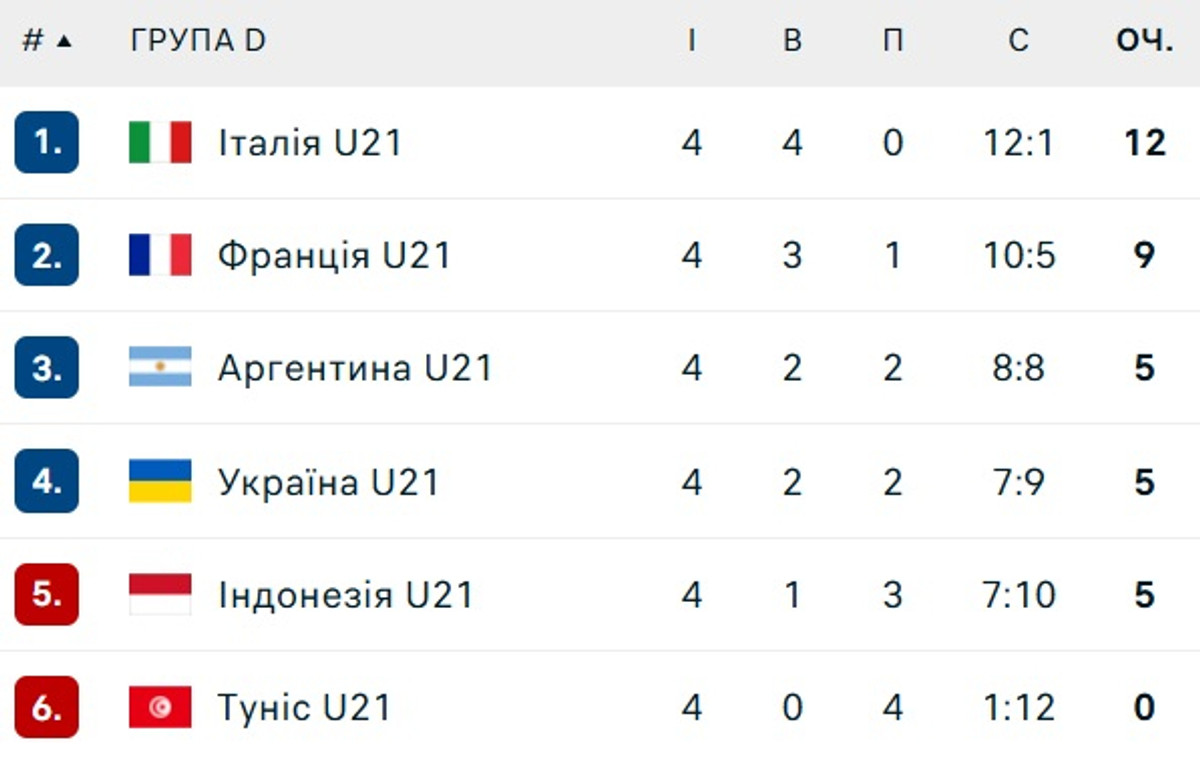 Турнірна таблиця групи D