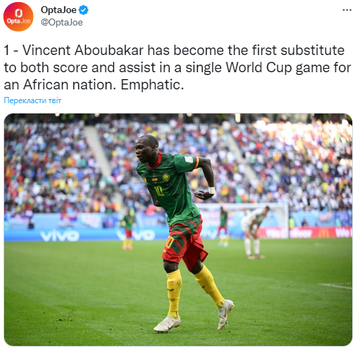 Нападник збірної Камеруну Венсан Абубакар став автором історичного здобутку на чемпіонатах світу.